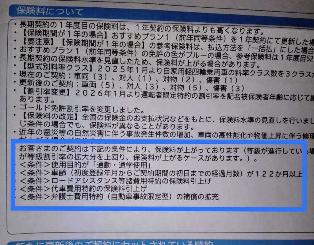 悔しいことに、私の「事故なしなのに自動車保険が値上がり」の理由は、案内の最後にしっかり明記してありました。