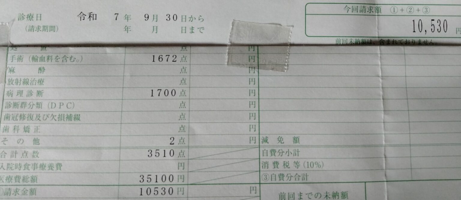 治療開始から切除に至るまでのトータルだと¥18,000程かかりましたね。