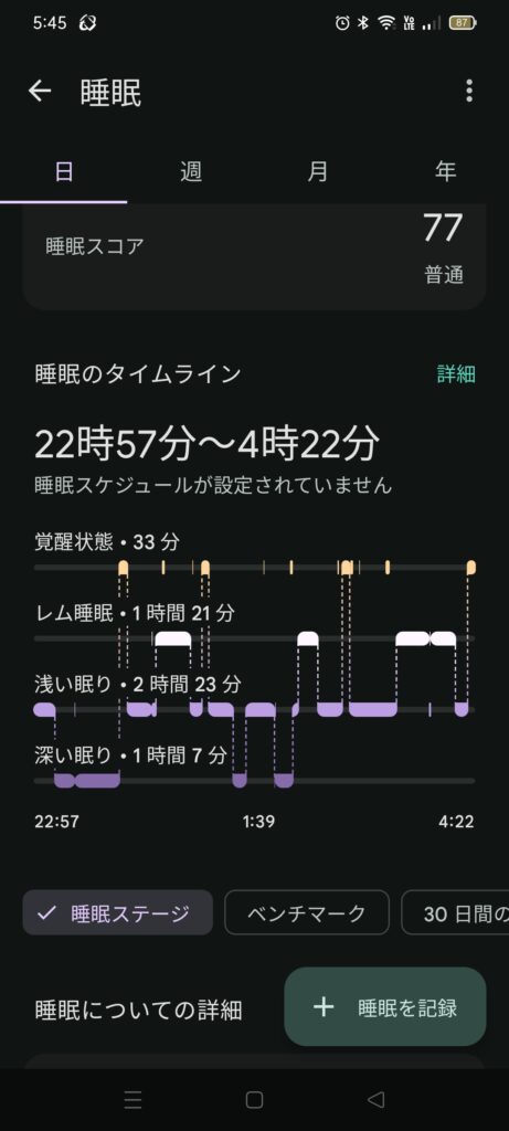 やはり思った以上に身体はお疲れモードらしく、昨夜の私の睡眠記録はなんと