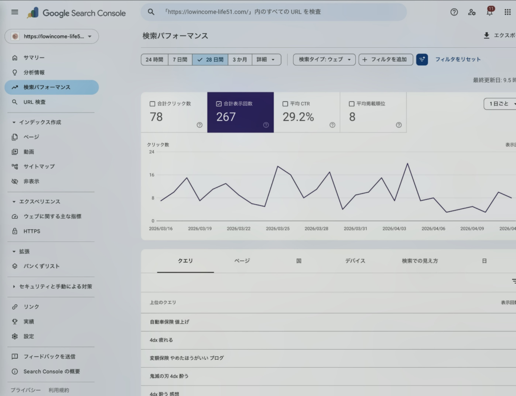 まずは合計表示回数 267回